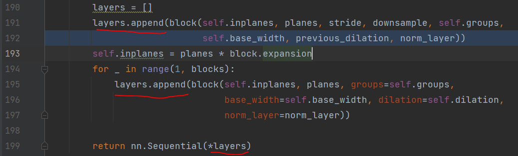한편으로는 딥러닝 BackBone 모델인 resnet을 구현할때 torchvision api 코드는 unpacking을 사용하여 layer의 구성을 시퀀스화 하였습니다.