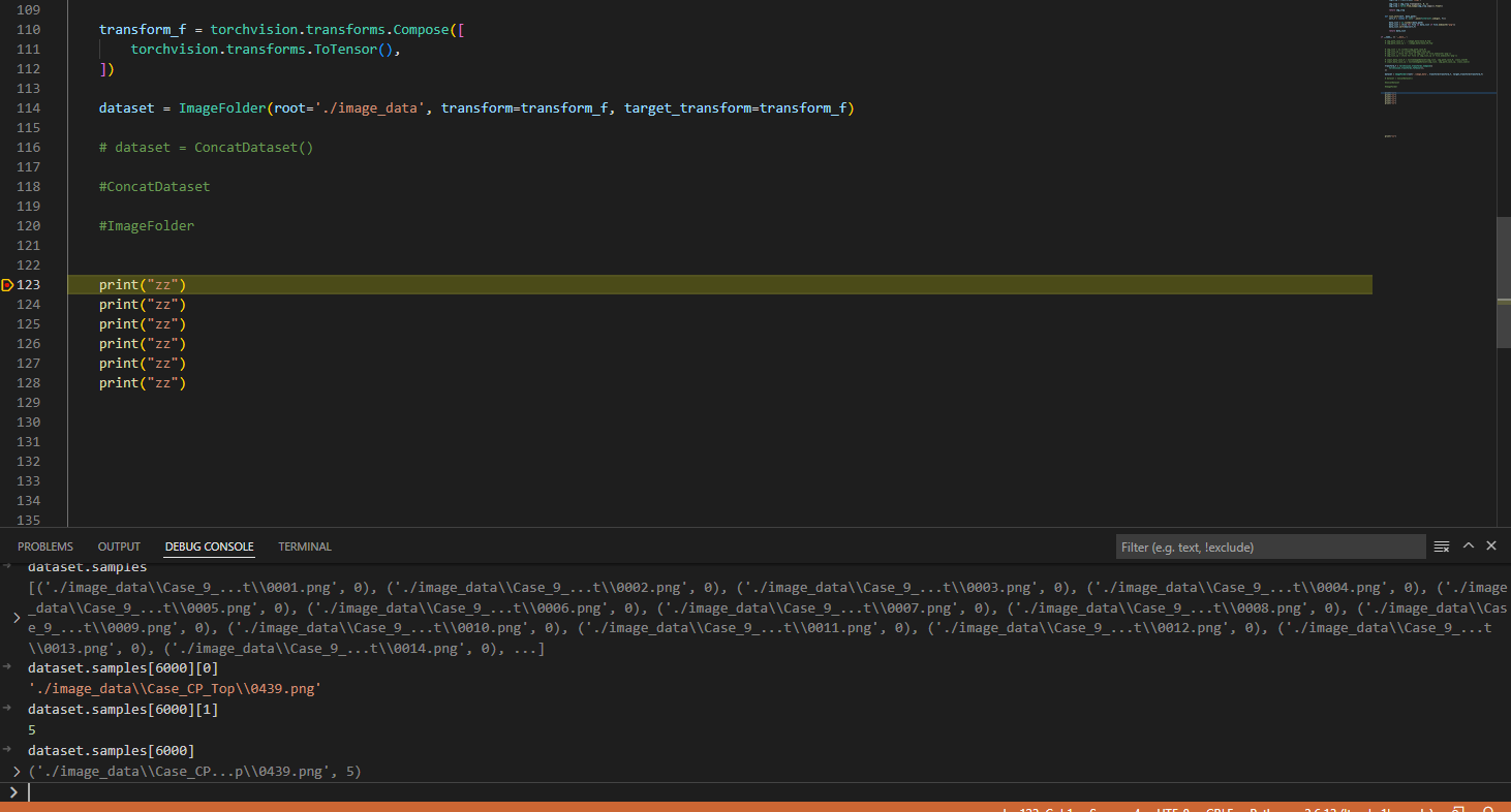 그 후 이렇게 ImageFolder은 세 가지 변수를 얻어 최종 데이터셋을 출력합니다.
